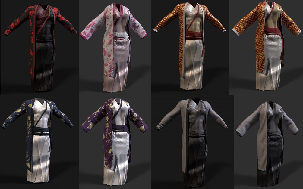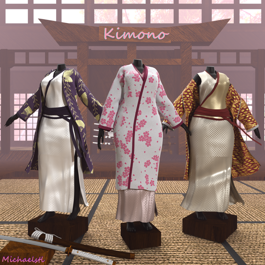 Kimono Set - Female - Set made in Marvolous Designer, Textured in Substance Painter, Rendered In Blender