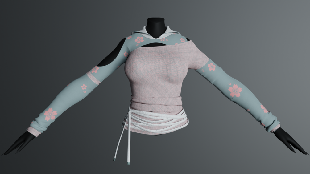 Semi Open Hoodie made in Marvolous Designer, Textured in Substance Painter, Rendered In Blender